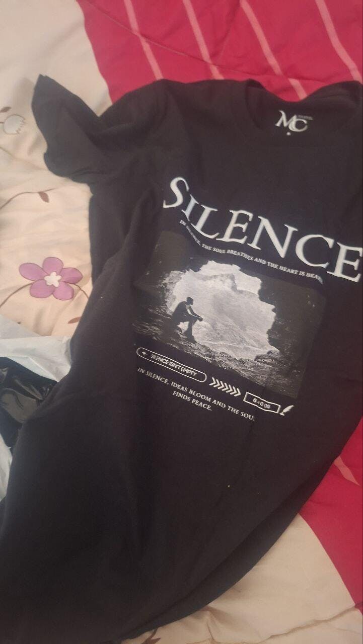 The clean "Silence" graphic speaks volumes without saying a word, making it a meaningful choice for those who value introspection, peace, or purposeful fashion. Whether you're heading to a relaxed gathering, a creative workspace, or enjoying a quiet moment, this shirt effortlessly fits the occasion.